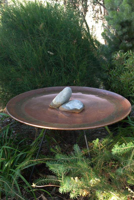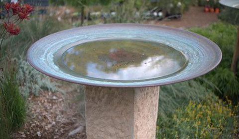 Mallee Birdbaths are specifically designed to serve birds. The copper dishes are broad and shallow, allowing birds to land on the edge and walk into the water. The baths are modern, elegant and durable. They are locally made in the Illawarra (NSW, Australia) using materials that will weather well and last decades. For help on which dish to choose, go here.