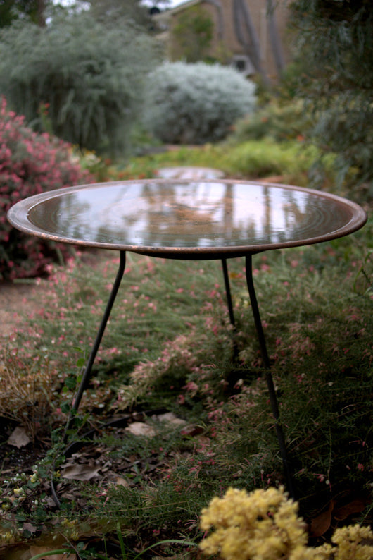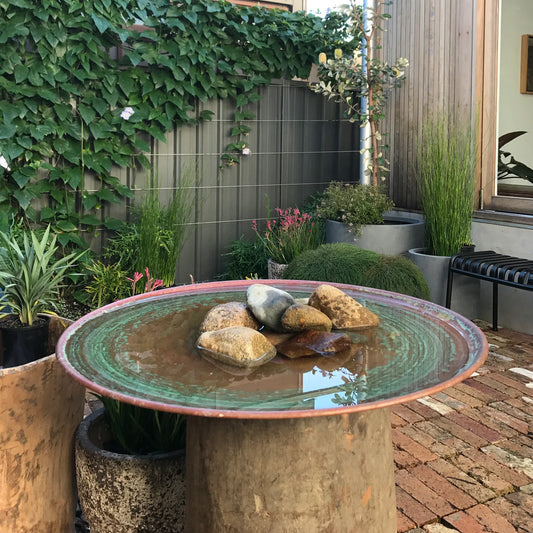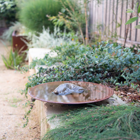 Not only does every dish age beautifully, developing a rich and detailed patina of varying colours, but copper has two other benefit: its antimicrobial properties upsets the mosquito lifecycle, and resist the growth of algae. So you can enjoy the benefits that a body of water brings to your garden without worrying about mosquitoes or slimy water.
