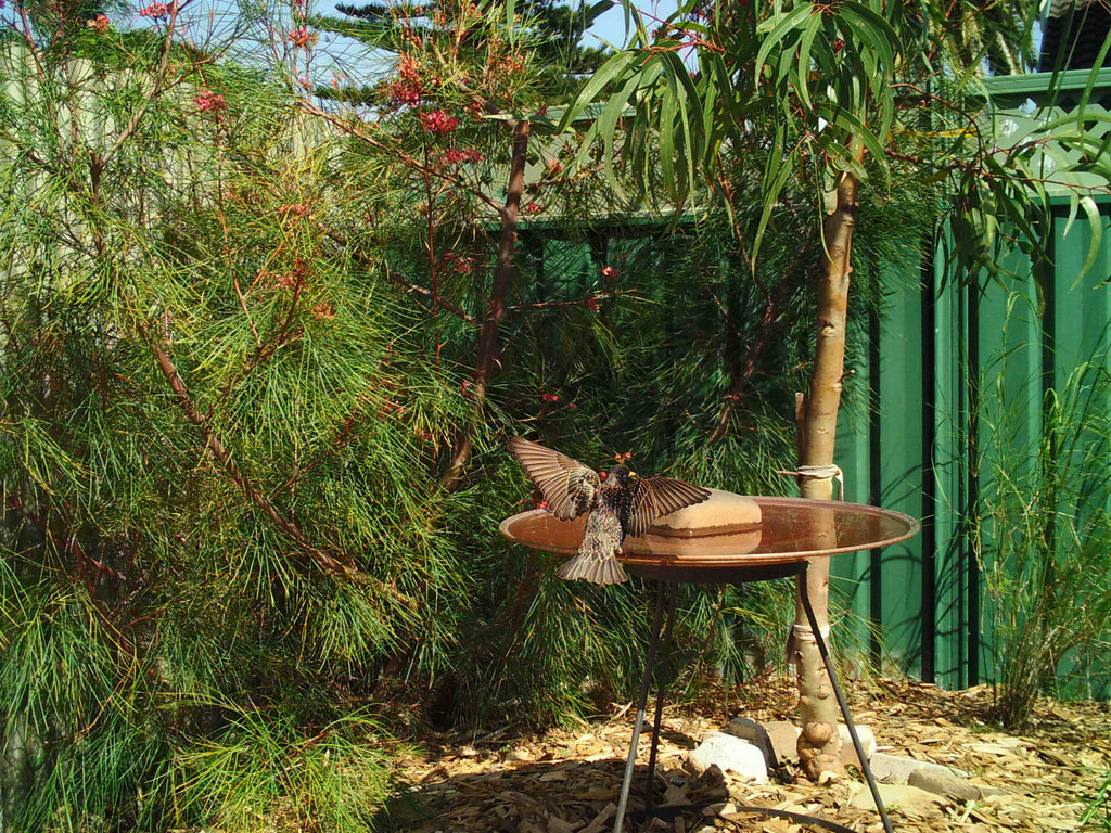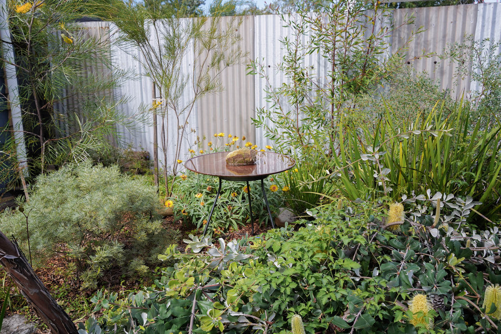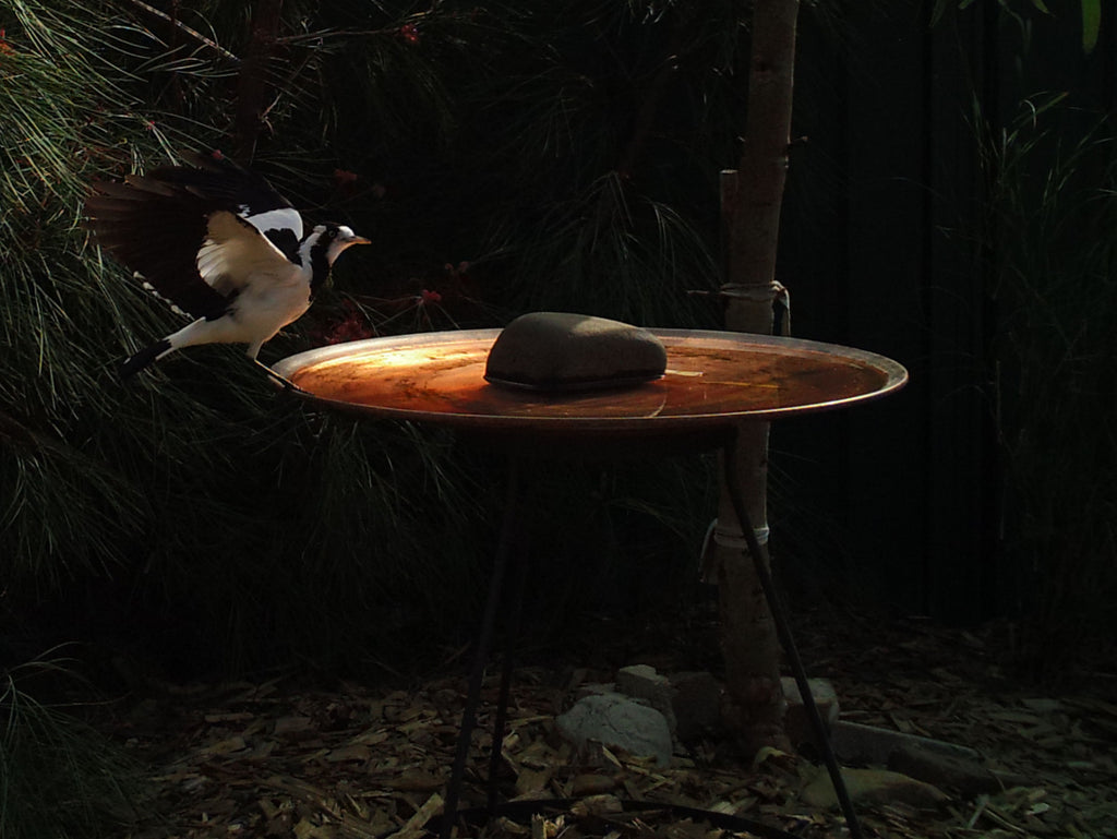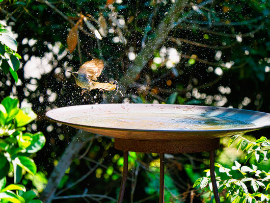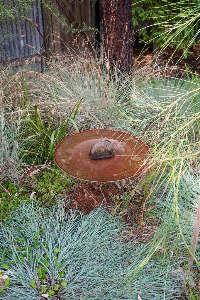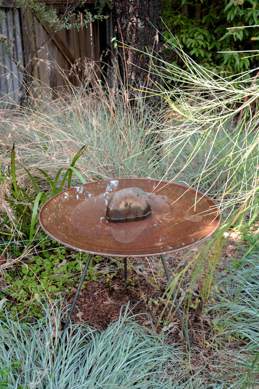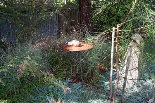 The Medium Dish on Floating Steel Stand bird bath is a medium dish (60cm diameter) raised on a steel stand that is designed to disappear amongst the plants in a garden bed.